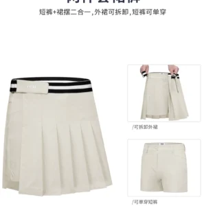 – Quần Váy QZ087 bao gồm lớp quần short tích hợp váy xếp ly tháo rời, kết cấu 2 trong 1 đặc biệt giúp outfit lên sân trở nên linh hoạt, trẻ trung. Golfer có thể sáng tạo mặc cùng lúc quần kết hợp váy hoặc mặc riêng quần short.