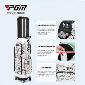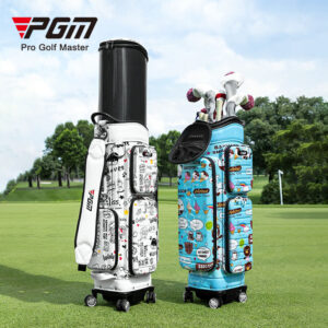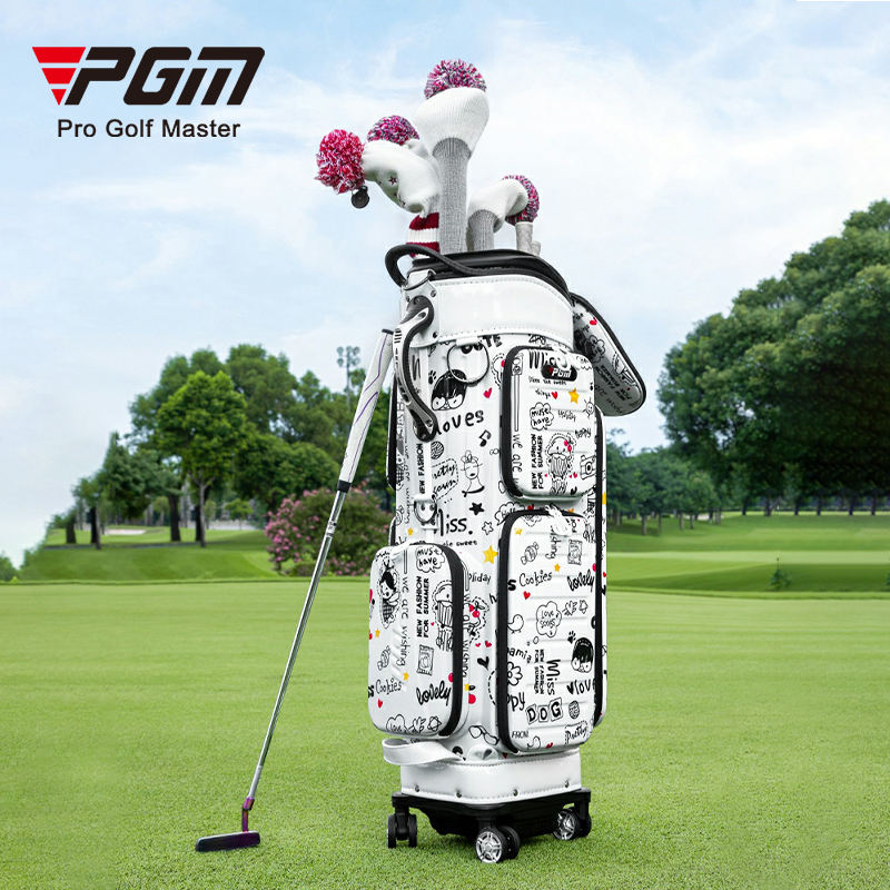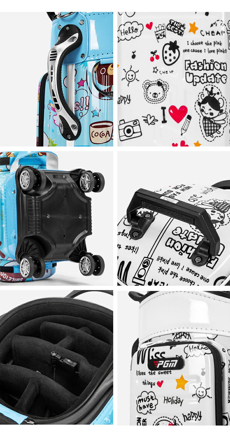 Túi đựng gậy golf du lịch PGM QB186 vỏ cứng in hình hoạt hình, dạng túi kéo có bánh xe.