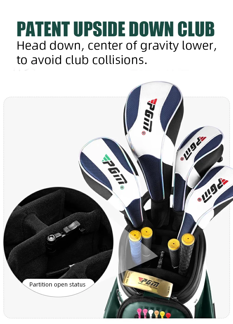 Sức chứa lớn: Đựng trọn bộ gậy golf (13–14 gậy), với 6 khe cắm riêng biệt giúp gậy không va chạm